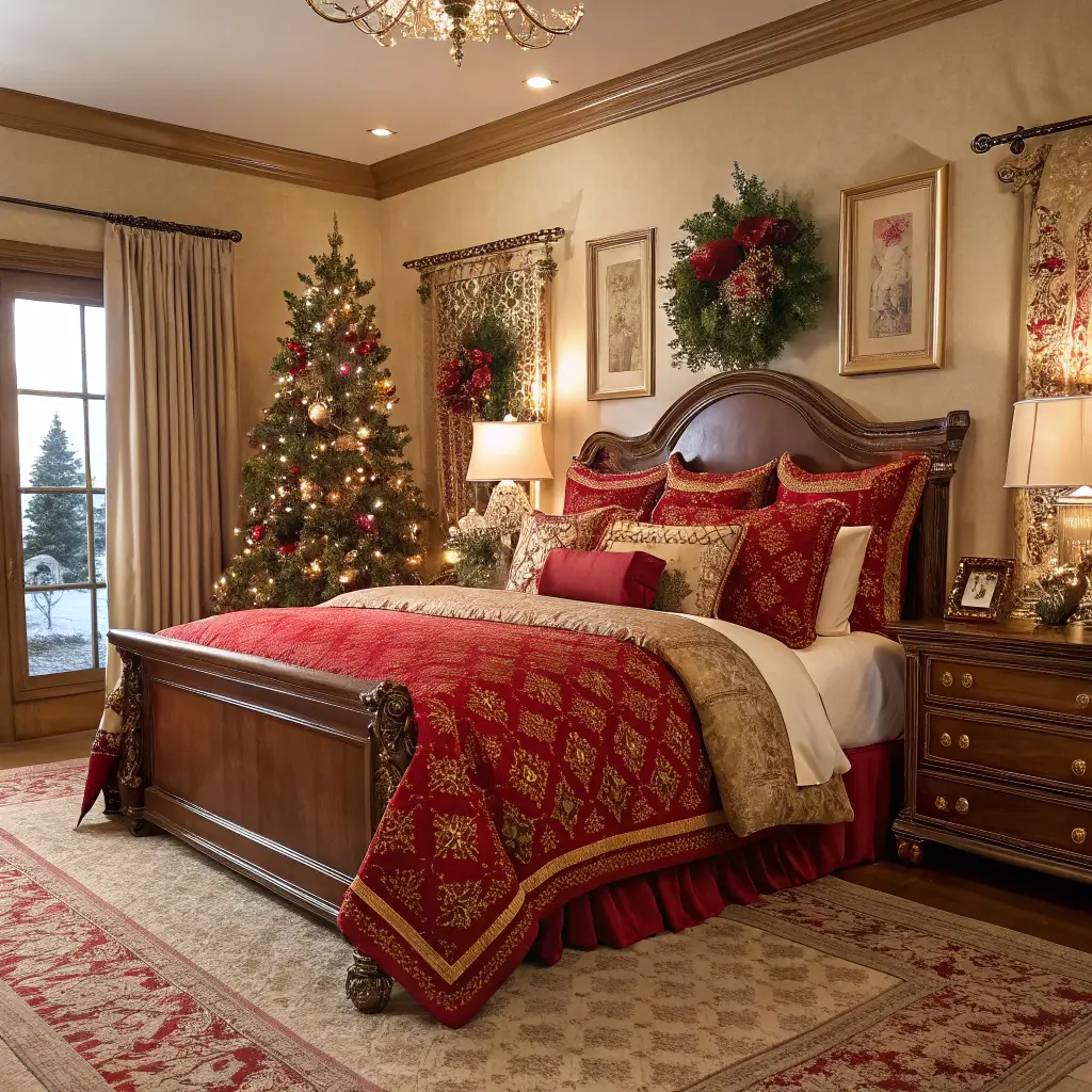Red & Gold Classic Christmas Bedroom