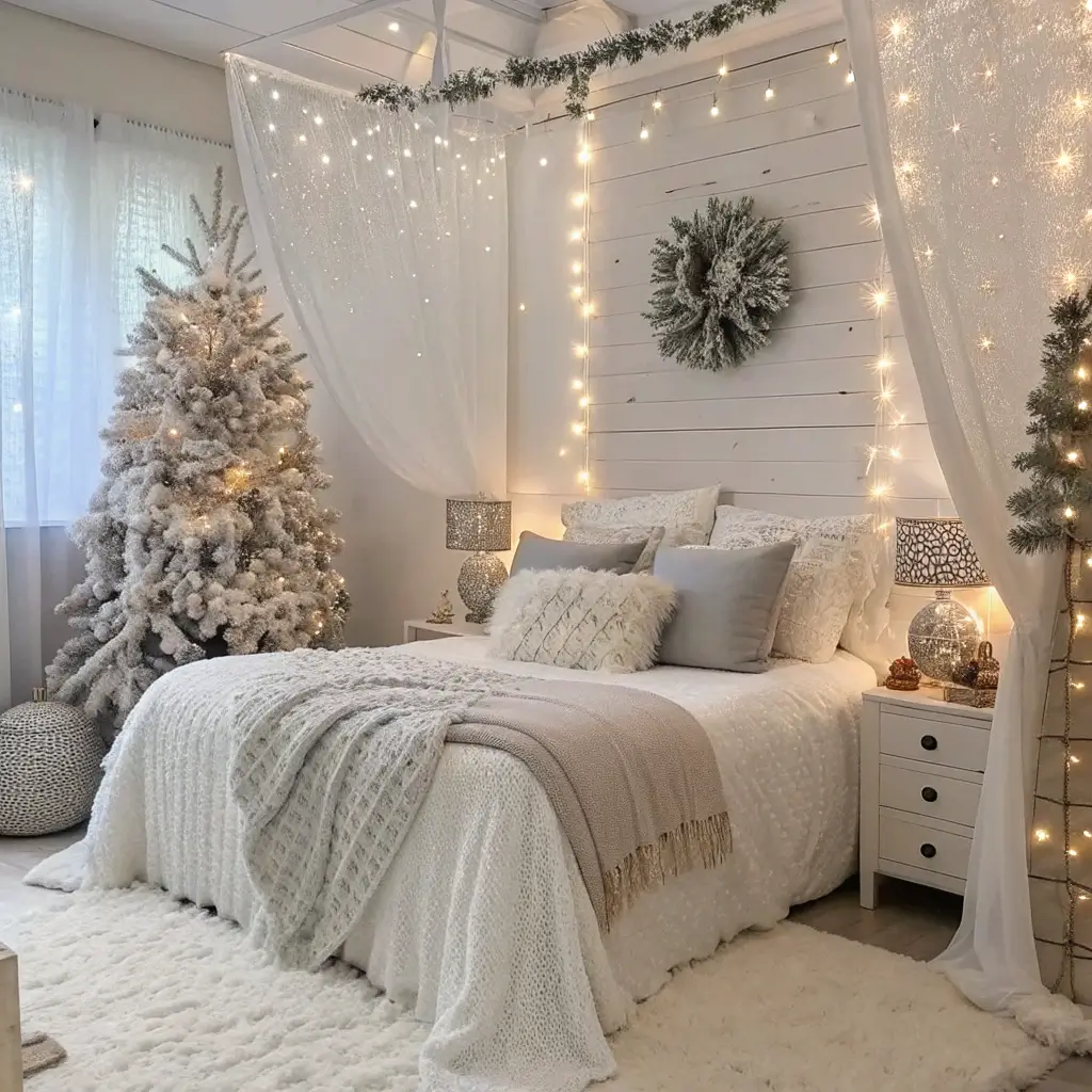 Minimal White Christmas Bedroom