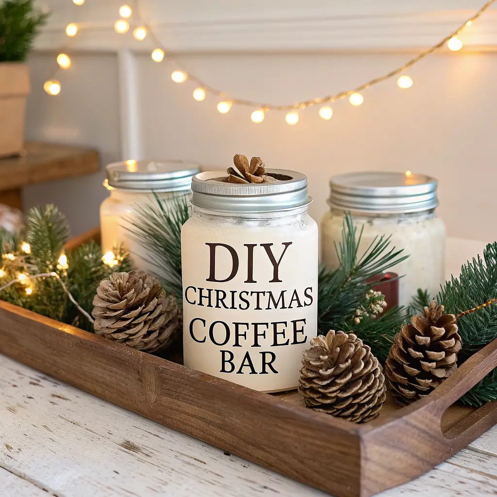 11. DIY Mason Jar Coffee Bar with Holiday Labels