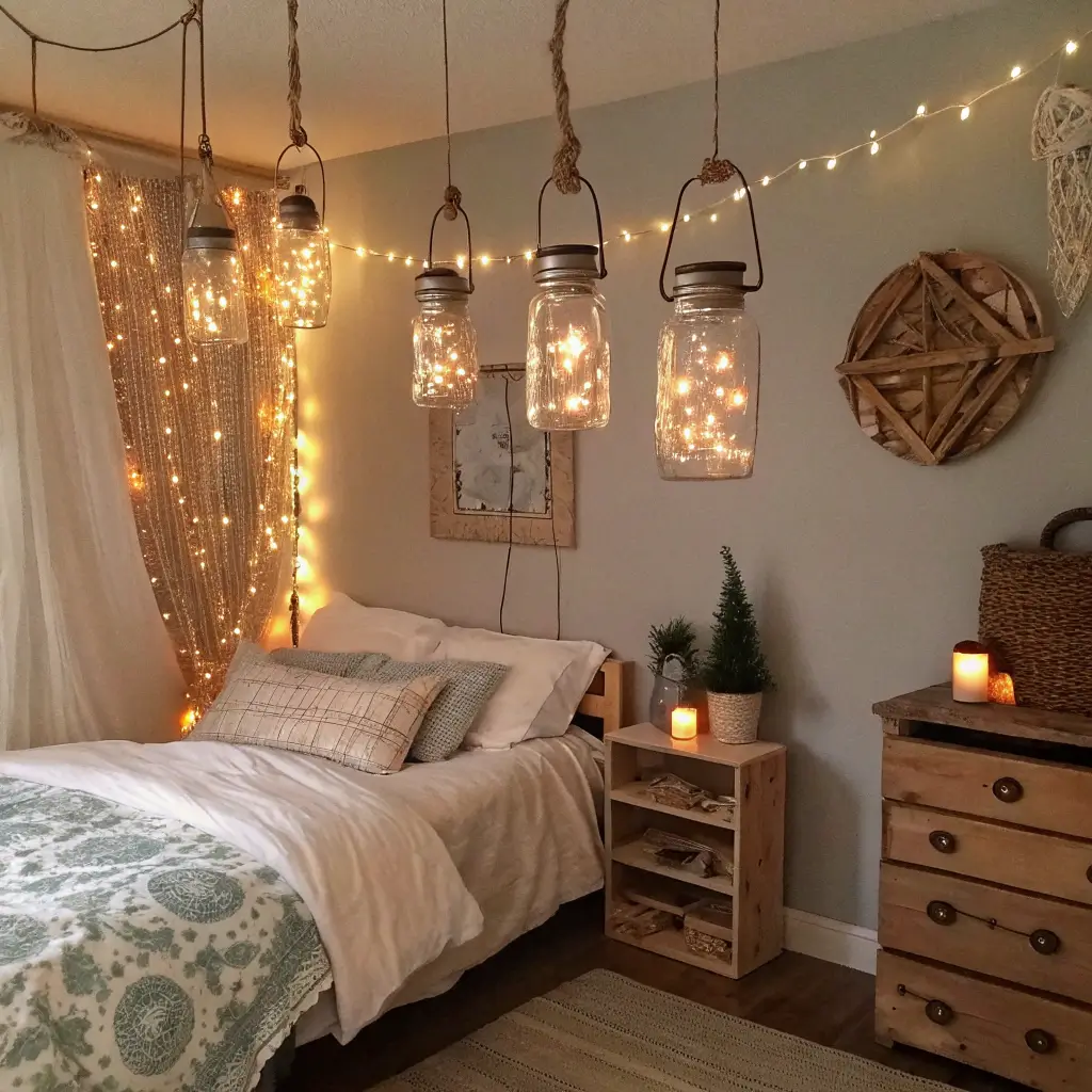 Okay, I know what you’re thinking – mason jars are so 2015. But hear me out. When you combine mason jars with Christmas lights, you create these beautiful floating lanterns that add serious cottage-core vibes to any bedroom. I made six of these for my room, and they’re honestly my favorite DIY project ever.