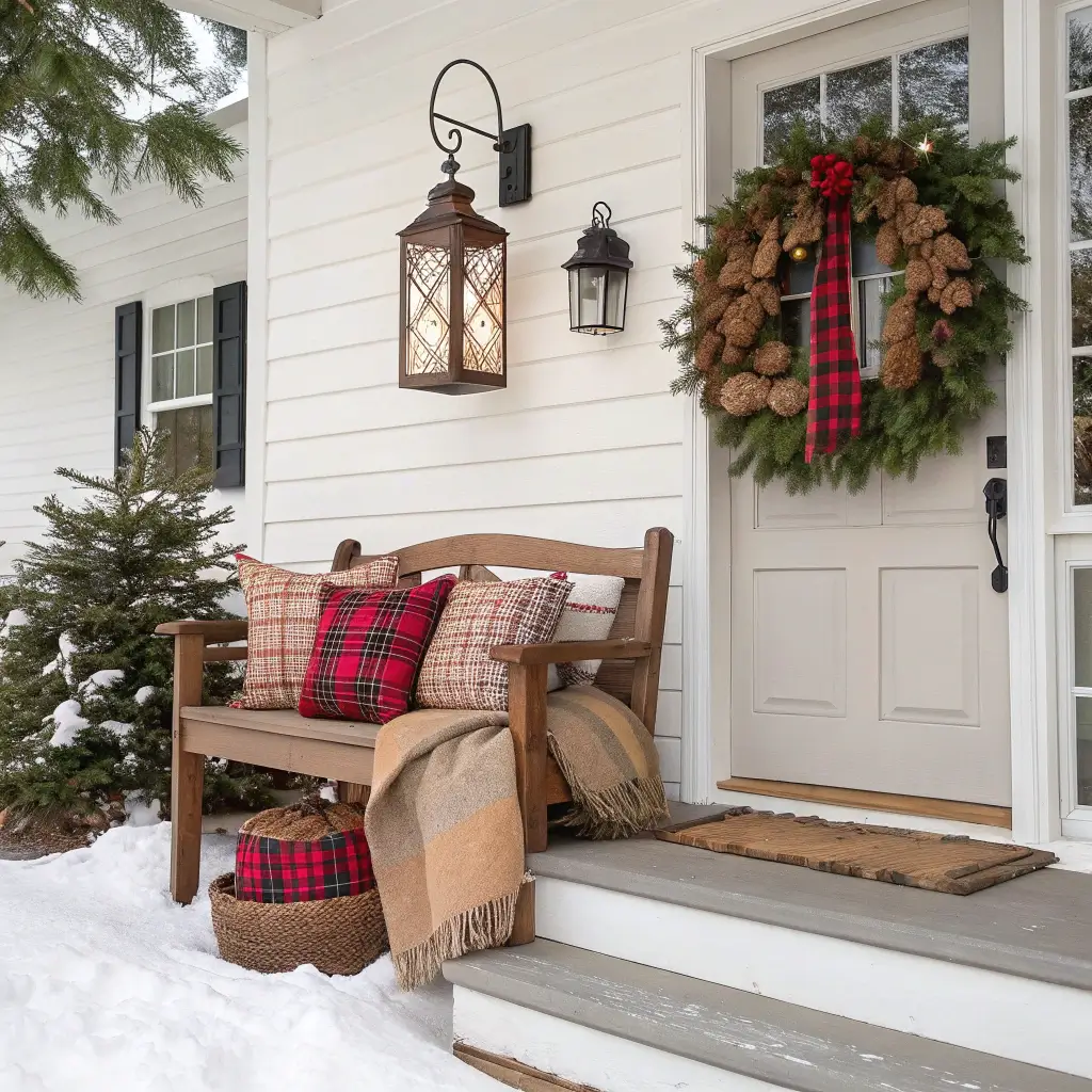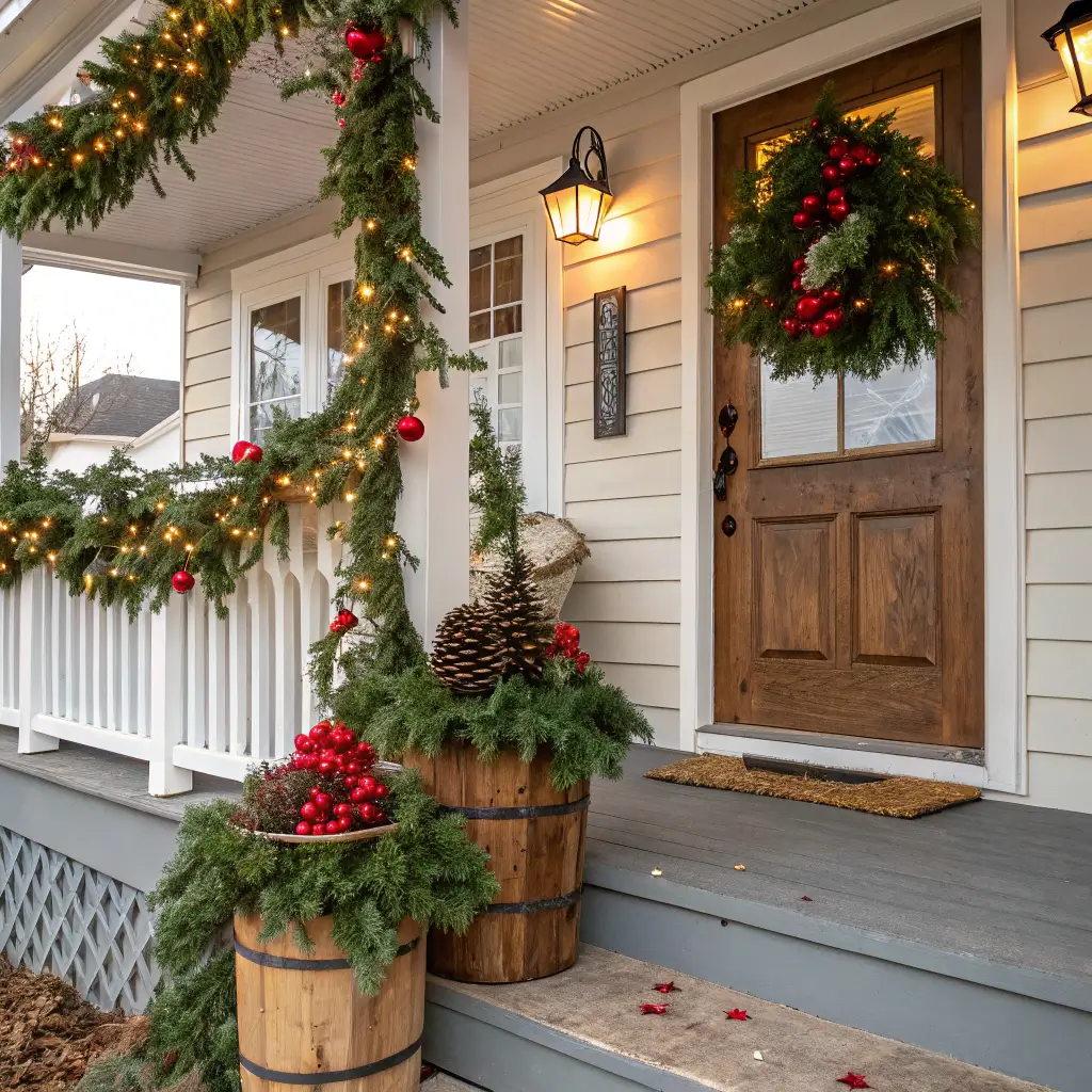 White birch branches create instant winter vibes. Arrange them in tall urns on either side of your door, add some white lights, and maybe a few silver ornaments. The vertical elements draw the eye up and make your porch feel grander than it actually is.