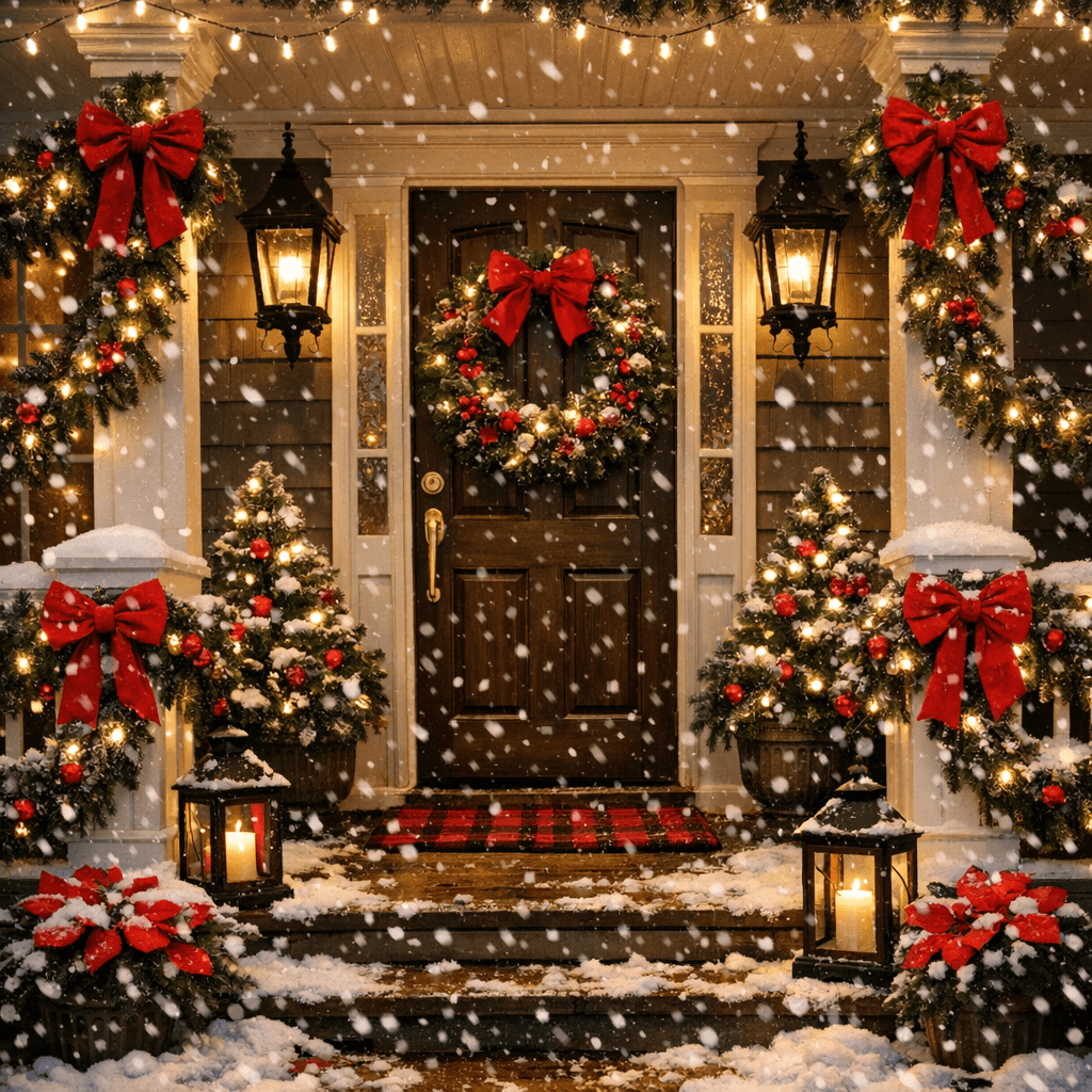 Add oversized decorations that play with scale. Huge ornament balls, giant candy decorations, an enormous bow on your door. When everything is slightly larger than life, it creates a storybook quality that makes people stop and smile.