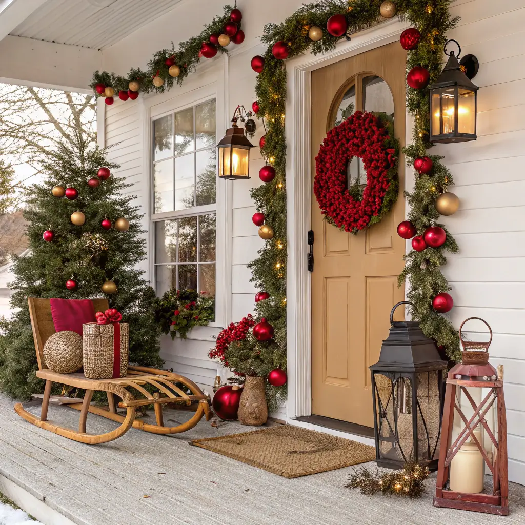 Classic Red and Green Holiday Porch