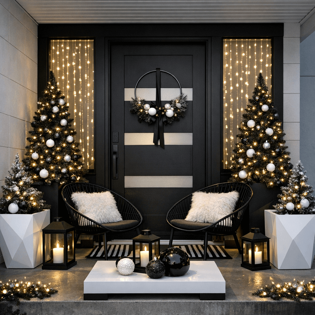 Who says Christmas has to be all tinsel and tradition? A modern sleek Christmas porch proves you can be festive without sacrificing your contemporary aesthetic. This style speaks to those of us who prefer clean lines over cluttered charm.
