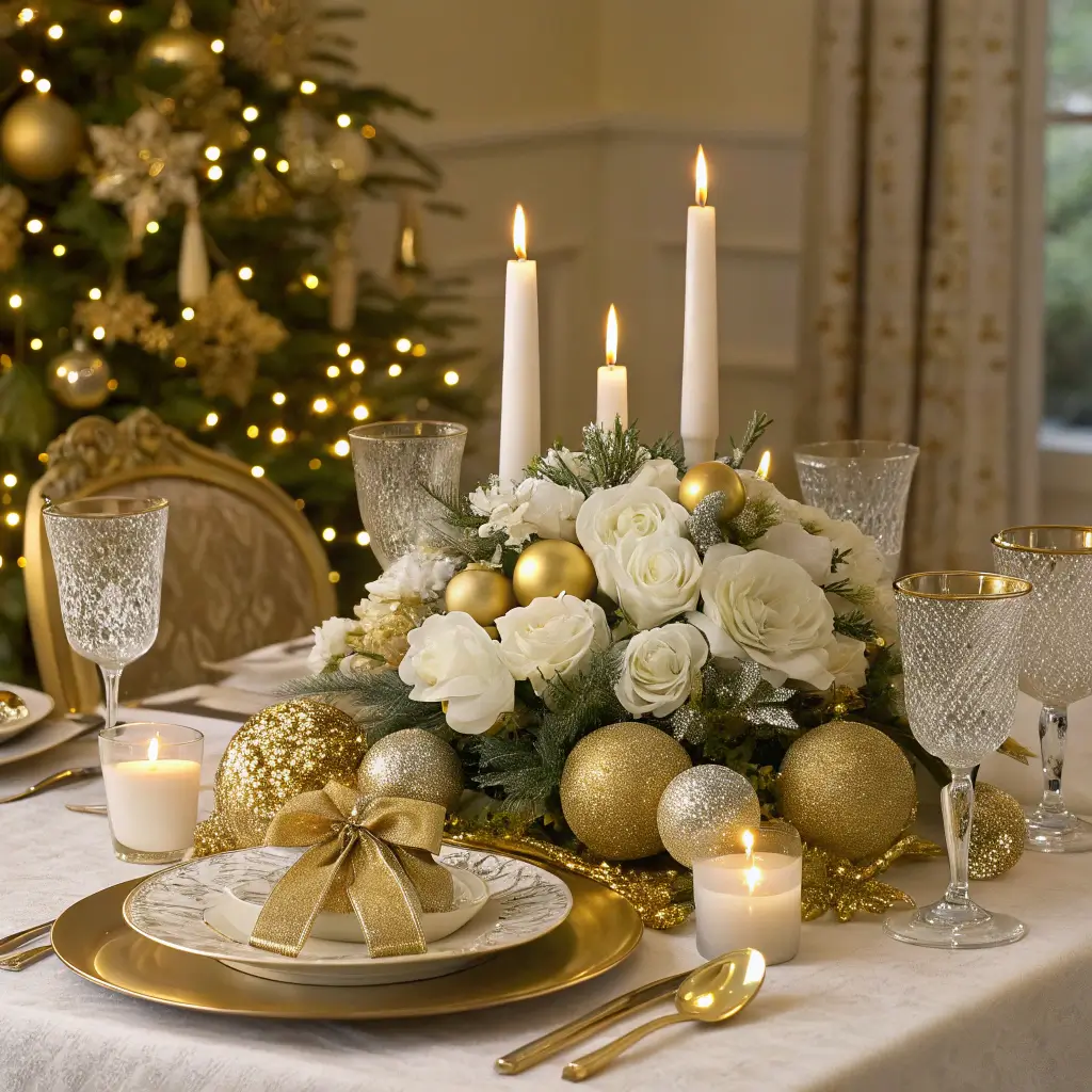 Elegant Gold and White Holiday Display