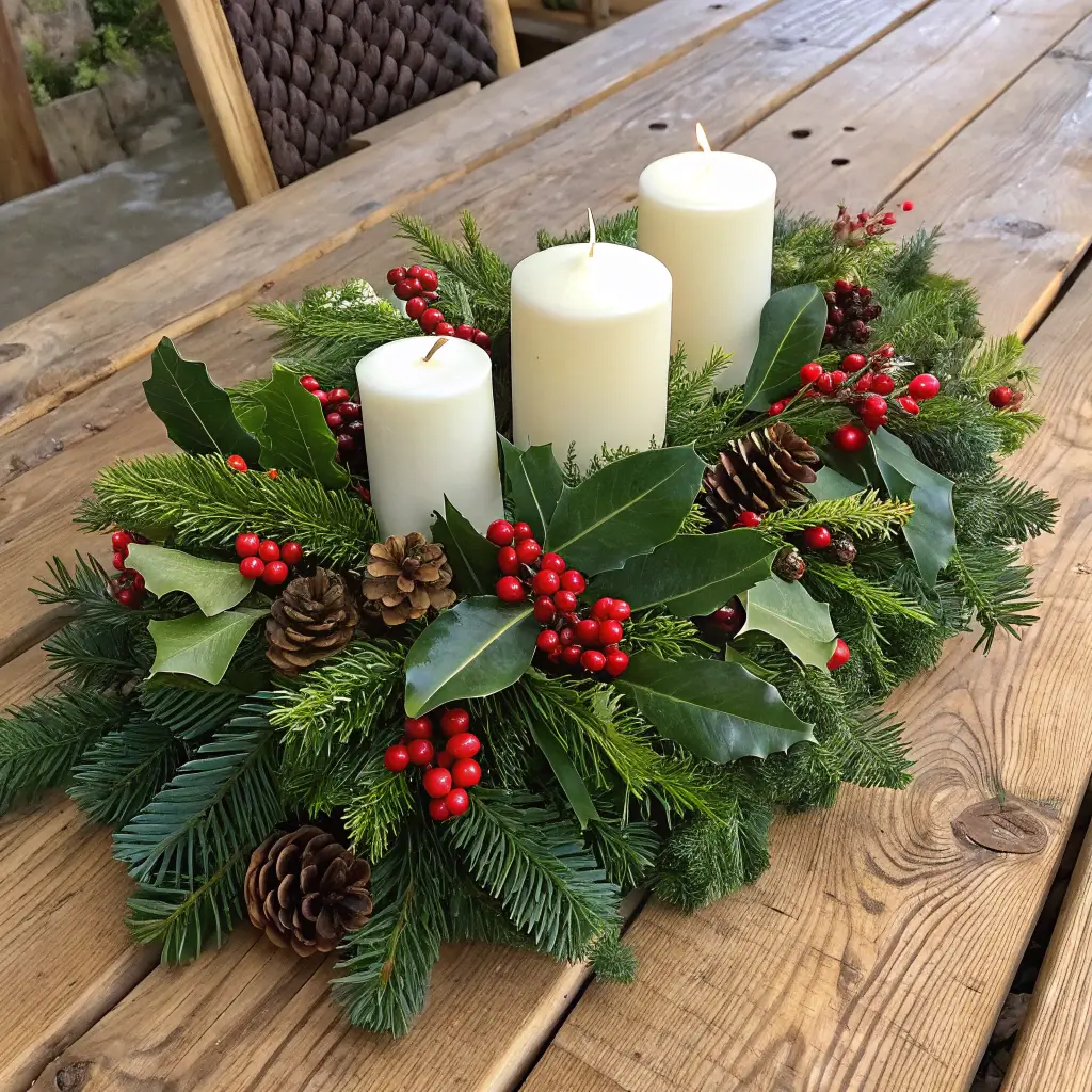 Sometimes you just want that classic Christmas look – the one that makes your table look like a holiday movie set. Fresh greenery with red berries never goes out of style, and it’s surprisingly easy to pull off.