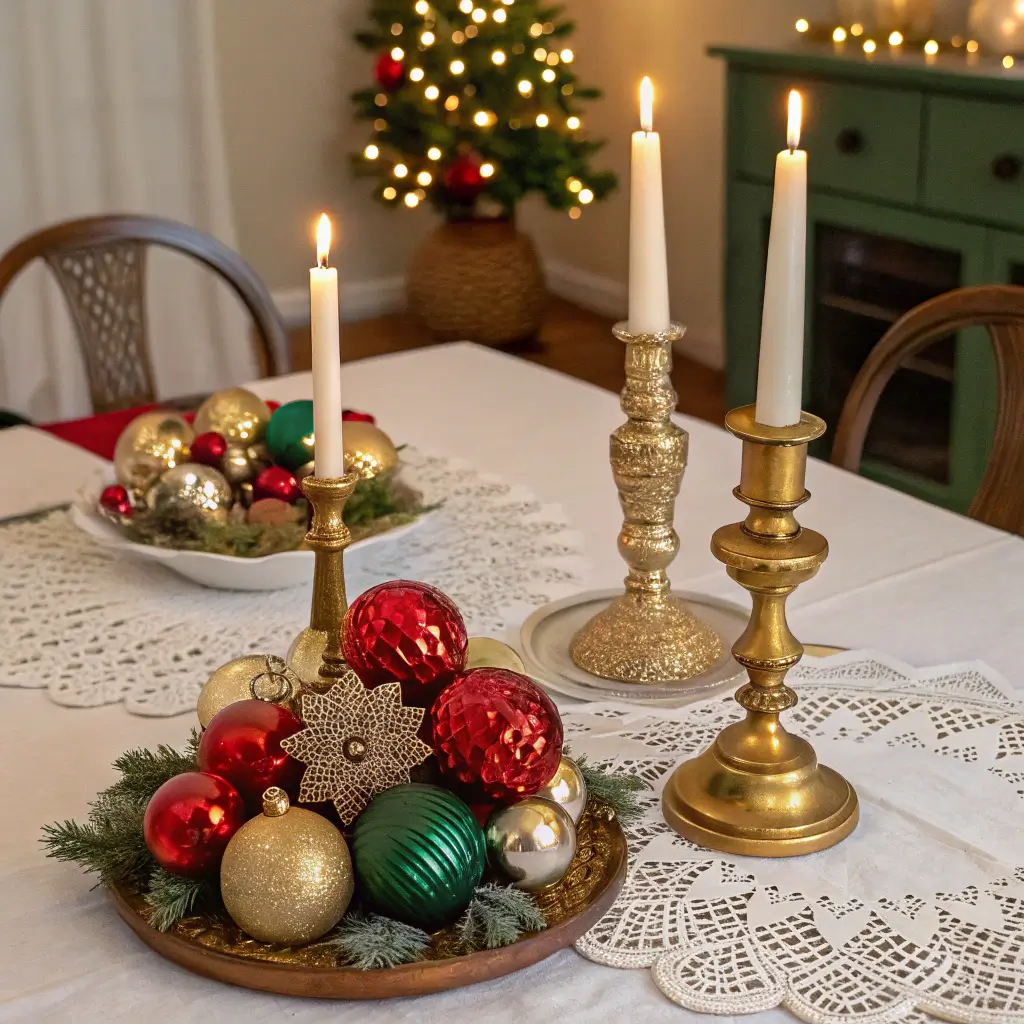 I inherited boxes of vintage ornaments that were too fragile for my tree (thanks, cats). Displaying them in a centerpiece keeps them safe while letting everyone admire their retro glory. Plus, each ornament usually comes with a story, making dinner conversation easy.
