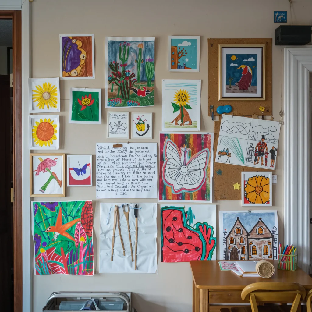 Pick a wall that gets natural light but won’t fade the artwork. I learned this the hard way when three months of direct sunlight turned vibrant watercolors into ghostly whispers of their former selves.