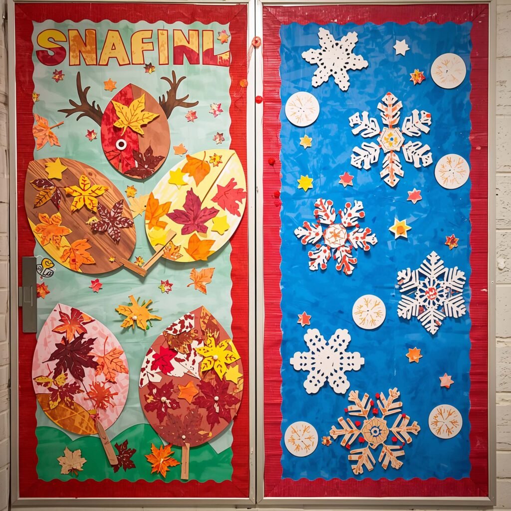 Instead of cramming everything onto one bulletin board, I create themed displays that change with the seasons. Fall leaves made from painted handprints, winter sculptures from recycled materials, spring flowers in every medium imaginable—each season brings new possibilities.