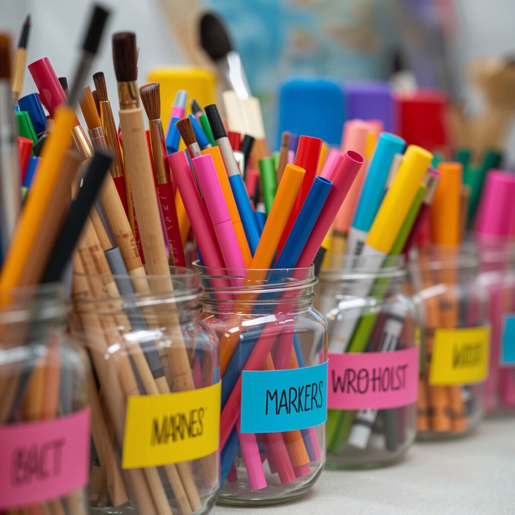 Labels might seem like a minor detail, but creative labeling transforms mundane organization into artistic expression. My supply jars sport labels that students actually want to read—imagine that!