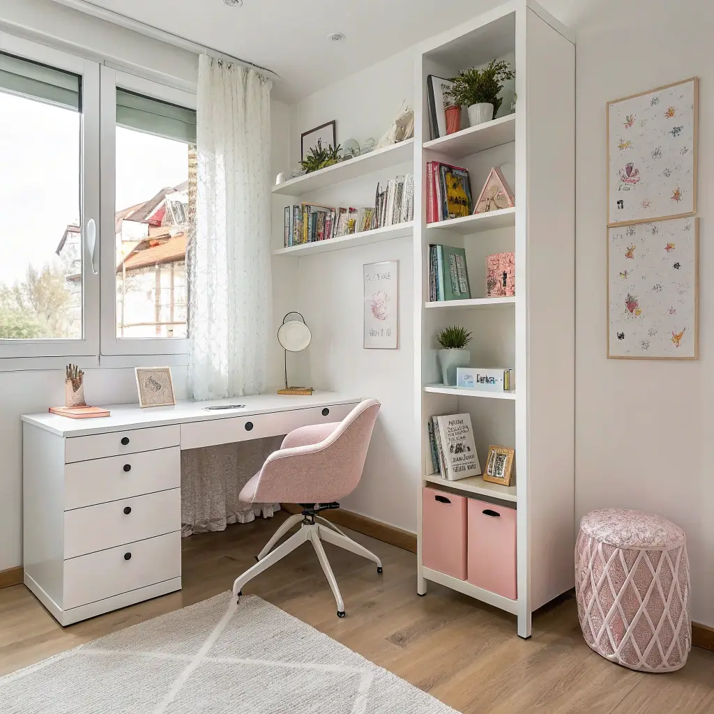 Choose a desk that disappears when not in use. I’m talking about something with thin legs, maybe in white or light wood, that doesn’t scream “WORKPLACE” when you’re trying to relax. Wall-mounted desks are amazing for this – they take up zero floor space and look intentional.