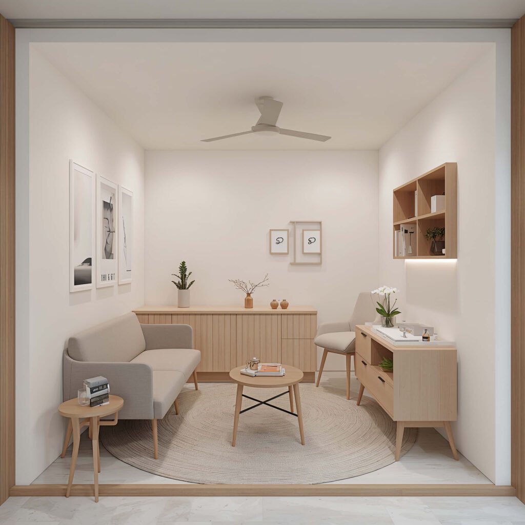 The beauty of minimalist design lies in its simplicity. You focus on functional furniture with sleek profiles, typically in whites, grays, or light woods. Think floating shelves instead of bulky cabinets, and streamlined reception desks that don’t dominate the room. This approach makes smaller clinics feel twice their actual size.