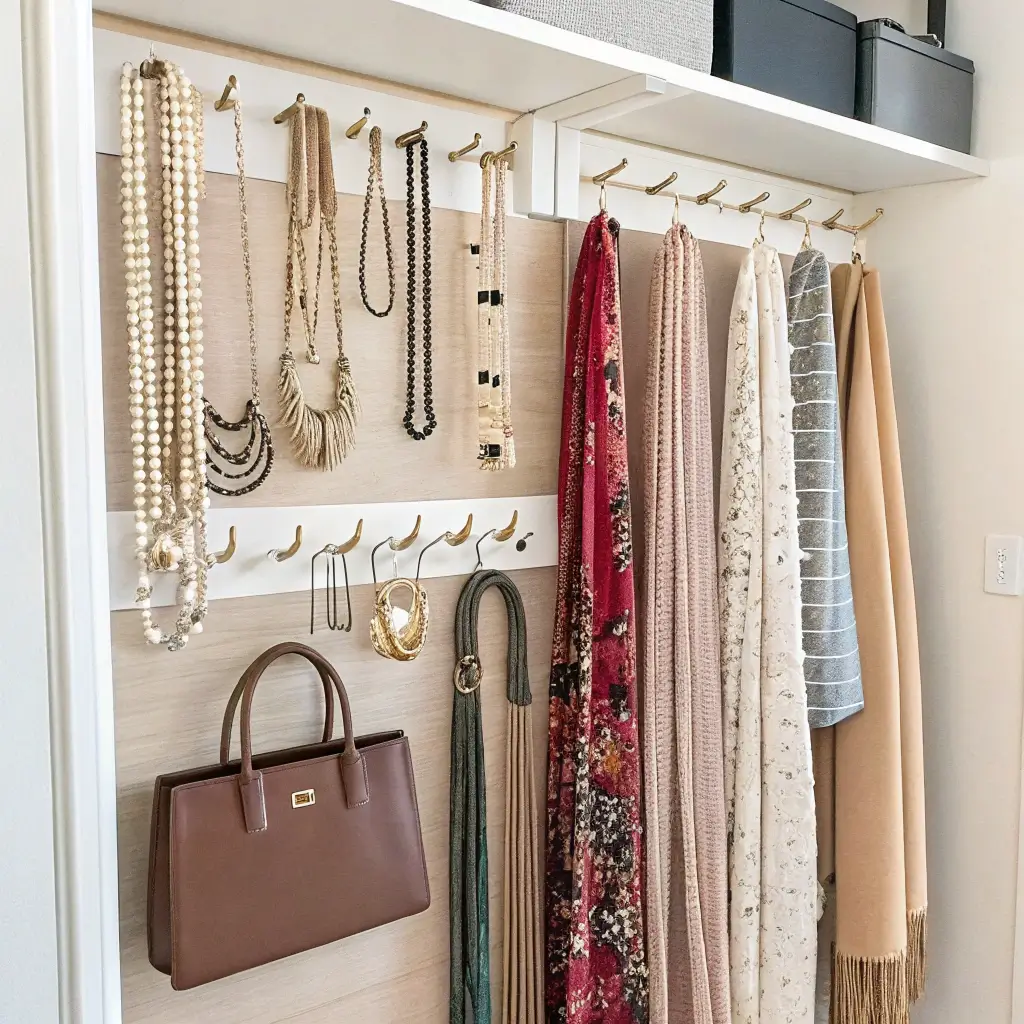 Why hide your accessories in drawers when they can double as wall art? Creating a hanging accessories display turned my blank closet wall into a functional gallery that makes me smile every time I see it.