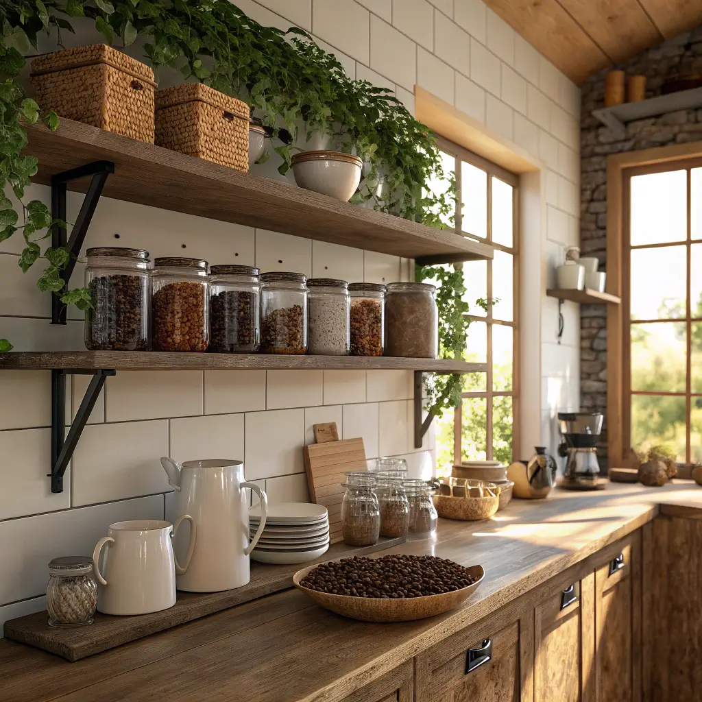 The beauty of this style? It actually gets better with wear and tear. Those coffee stains on your wooden counter? They add character. That slightly tarnished copper kettle? Perfect patina.