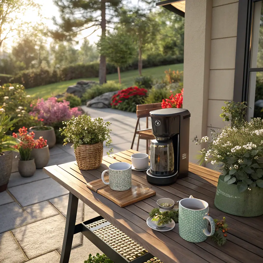 Who says coffee bars belong inside? My patio coffee station gets more use than my indoor one during summer. There’s something magical about brewing coffee while birds sing and morning sun warms your face.