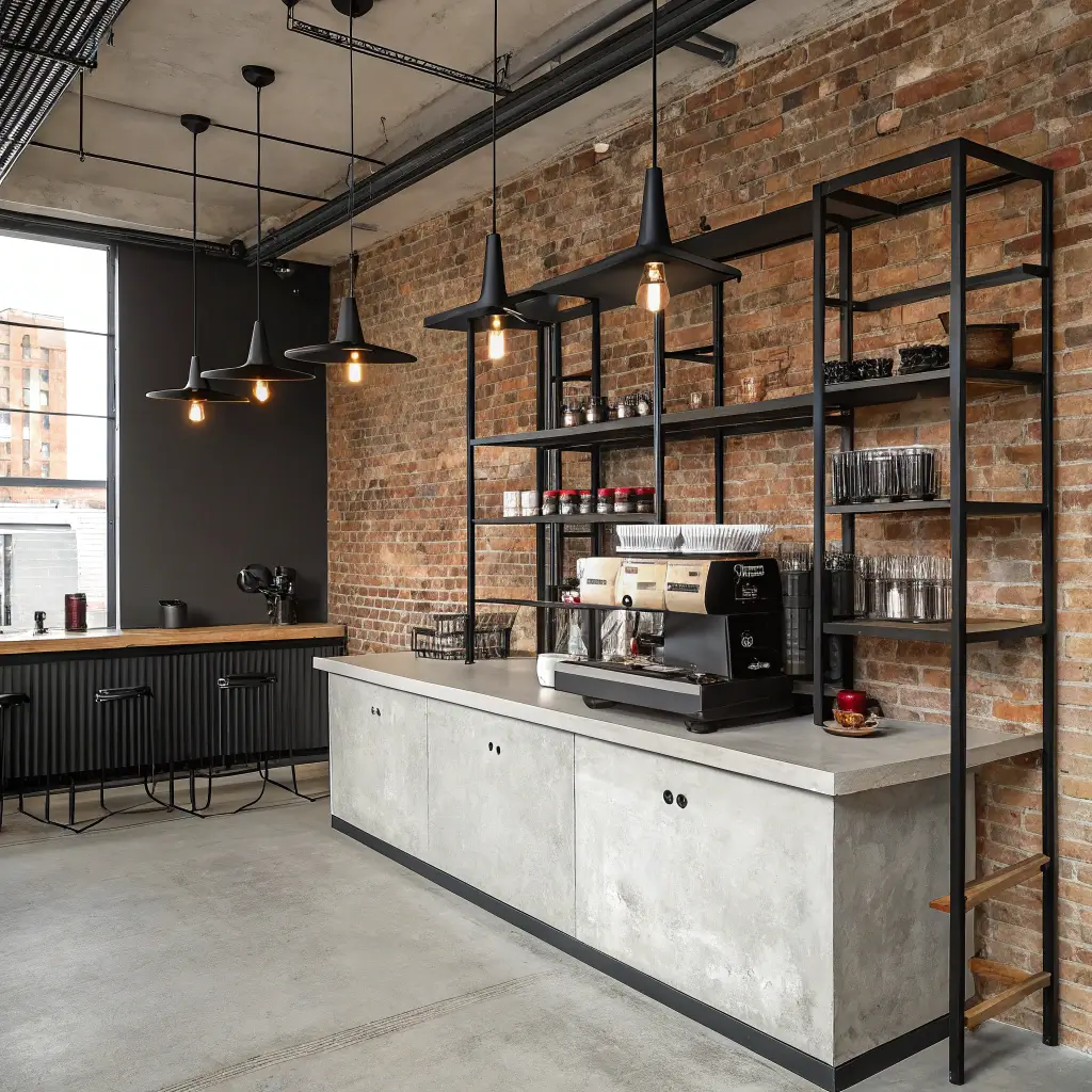Your coffee equipment becomes sculpture here. That stainless steel espresso machine you splurged on? Display it proudly. Industrial doesn’t mean cold though – warm it up with Edison bulb lighting and maybe a vintage leather stool nearby.