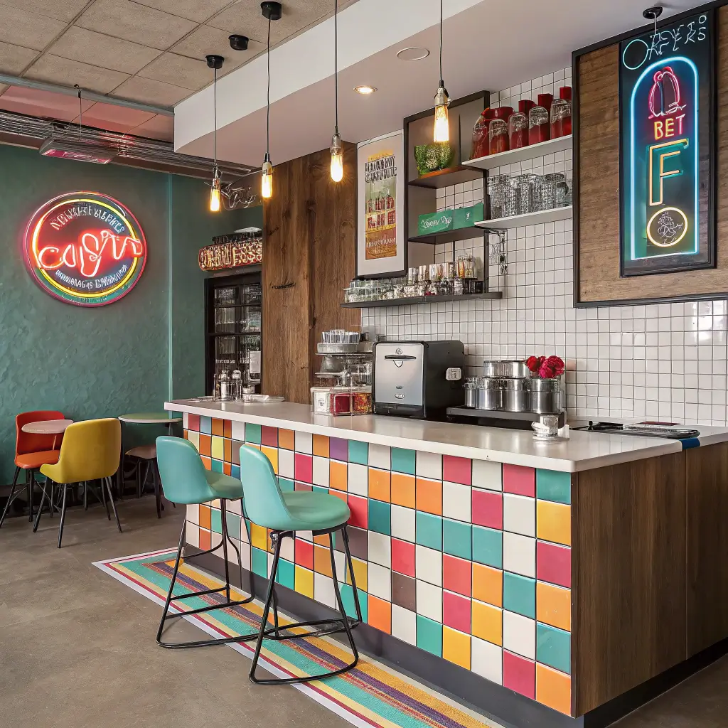 Ready to time-travel? The retro coffee bar brings all the fun of mid-century design without the lead paint. Whether you’re channeling the ’50s diner or ’70s groovy, this style never fails to start conversations.