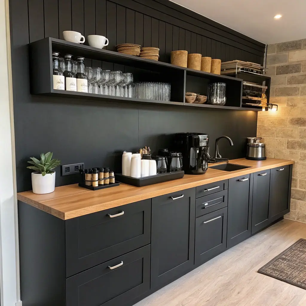 Minimal Black & Wood Coffee Station