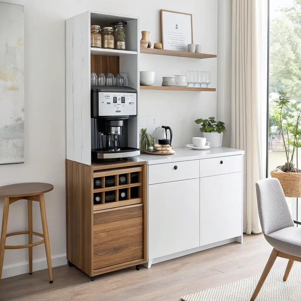Why choose between coffee and wine when you can have both? Dual-purpose cabinets maximize functionality, especially in smaller homes. My convertible cabinet serves coffee by day, wine by night—the ultimate transformer.