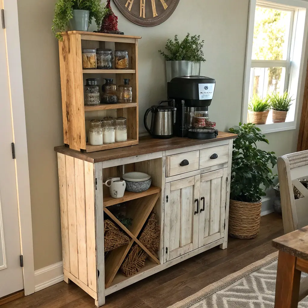 Ever walk into someone’s kitchen and immediately feel cozy? That’s the farmhouse coffee cabinet effect. I built one of these bad boys using reclaimed barn wood, and honestly, it changed my entire kitchen vibe. The rustic aesthetic isn’t just trendy—it’s timeless and forgiving when you inevitably spill coffee grounds everywhere.