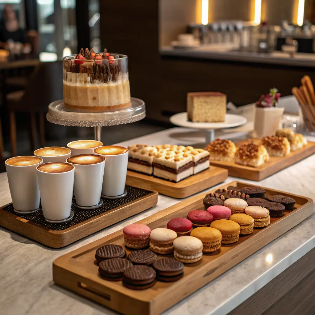 Set up tasting stations where guests can try different combinations. Small portions work best—nobody needs a full slice of cake with each coffee sample. Think bite-sized desserts and espresso-sized coffee portions.