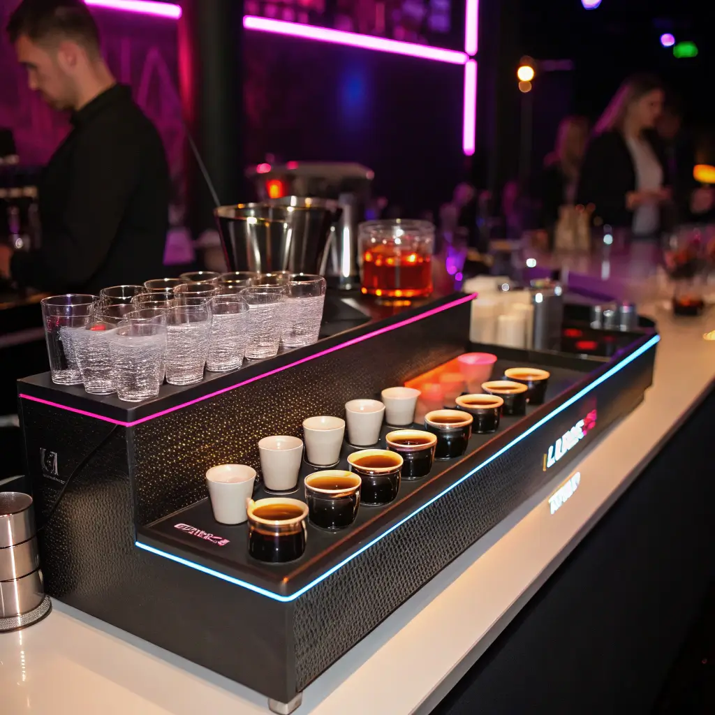 Set up different espresso “shot” options: straight espresso, cortado shots, even espresso with a splash of different milks or syrups. Think of it like a regular shot bar, but one that actually helps you remember the night.