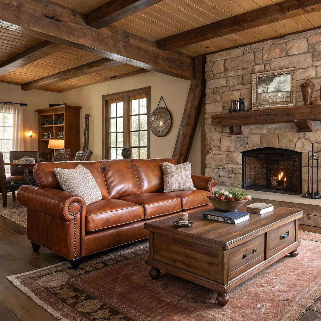 Rustic Charm with Cognac Sofa