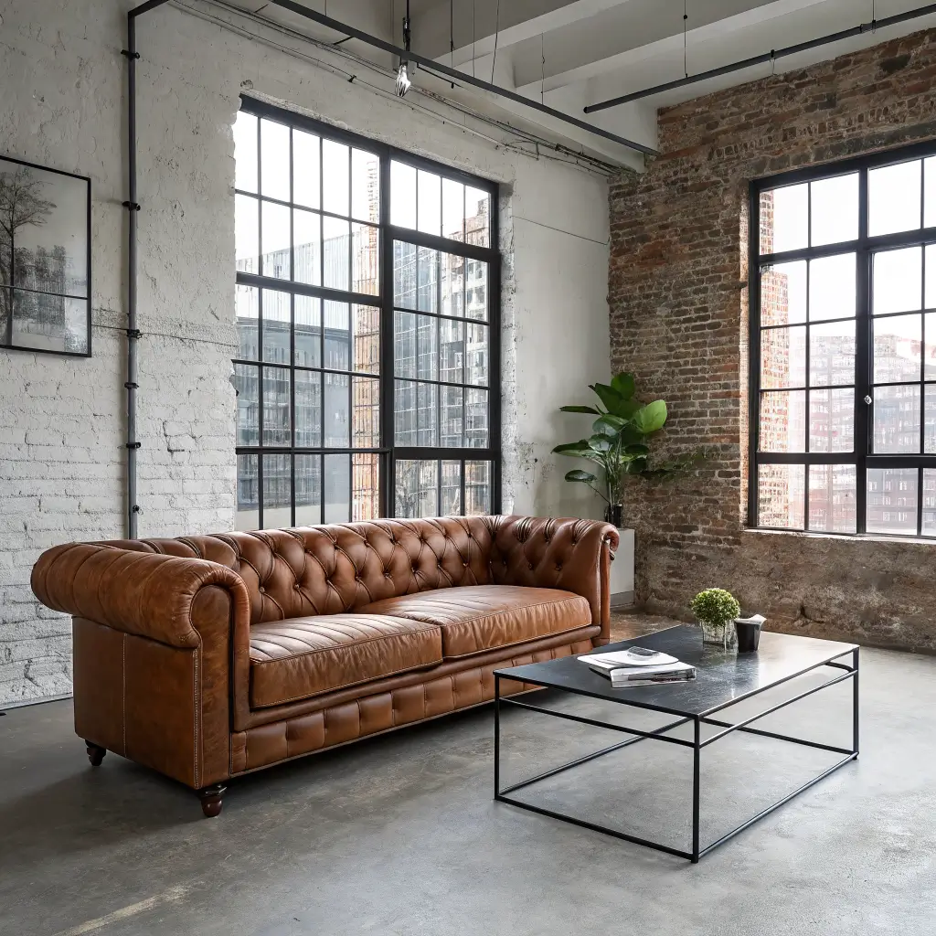 Industrial Loft with Cognac Couch