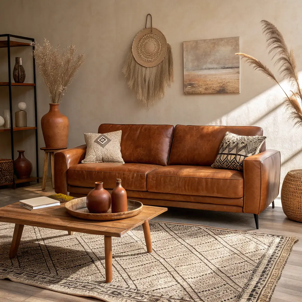 Macramé wall hangings? Absolutely. Moroccan poufs? Yes, please. That collection of houseplants you’re slightly obsessed with? They belong here too. The warm tones of the leather play beautifully with natural fibers and earthy colors.