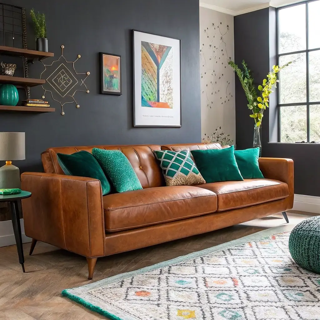 Bold Accent Colors with Cognac Sofa