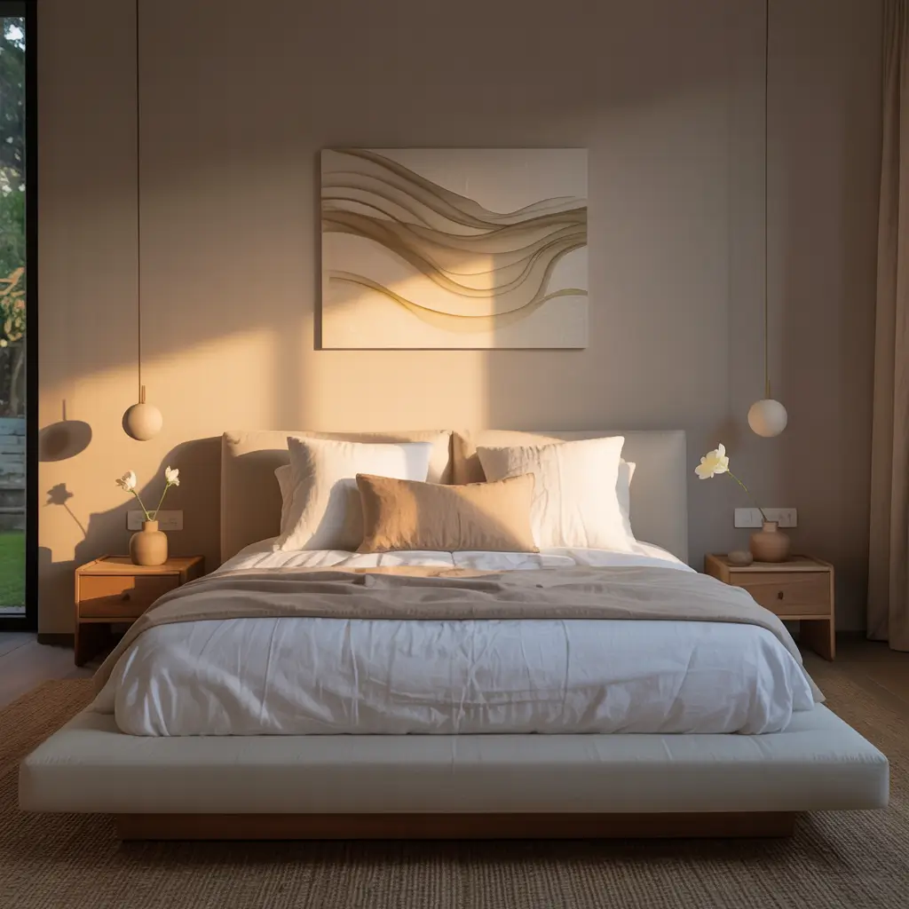 Start with ambient lighting from ceiling fixtures or recessed lights. Add task lighting with sleek bedside lamps or wall-mounted reading lights. Then bring in accent lighting with LED strips behind your headboard or under floating shelves.