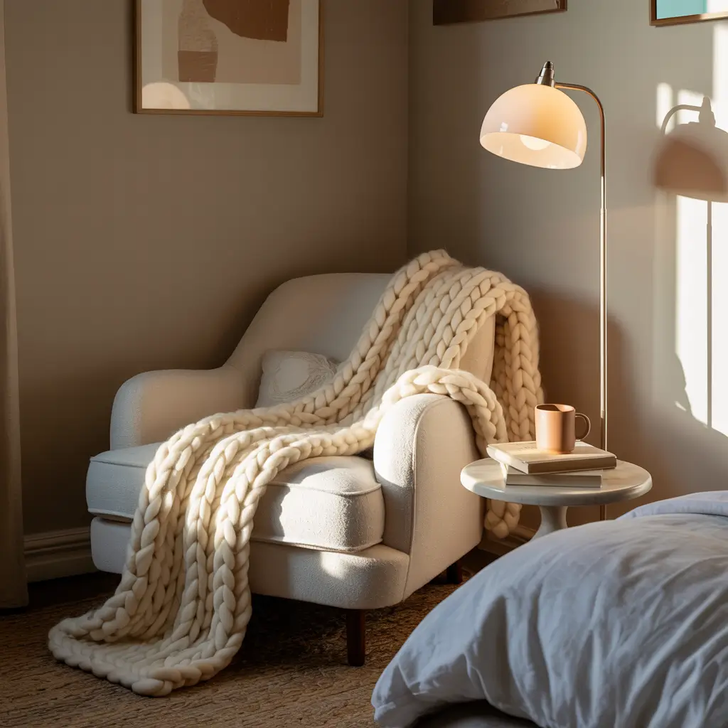 Every bedroom needs a cozy corner – that perfect spot for morning coffee or late-night reading. Create one with a modern accent chair, a small side table, and good lighting. Even in tiny bedrooms, you can carve out this space.