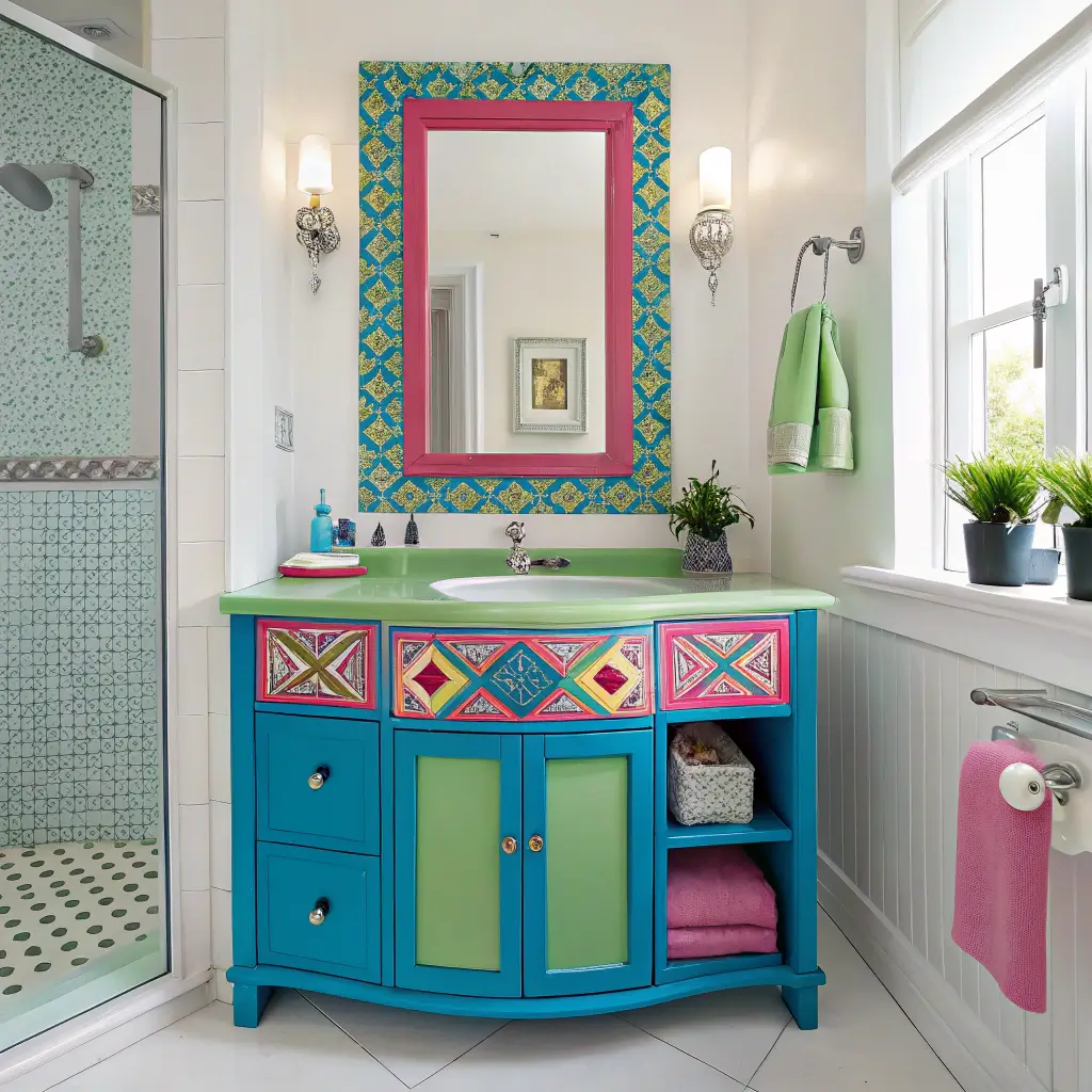 Remember to use bathroom-appropriate paint that handles moisture and temperature changes. Nobody wants peeling paint ruining their colorful dreams.
