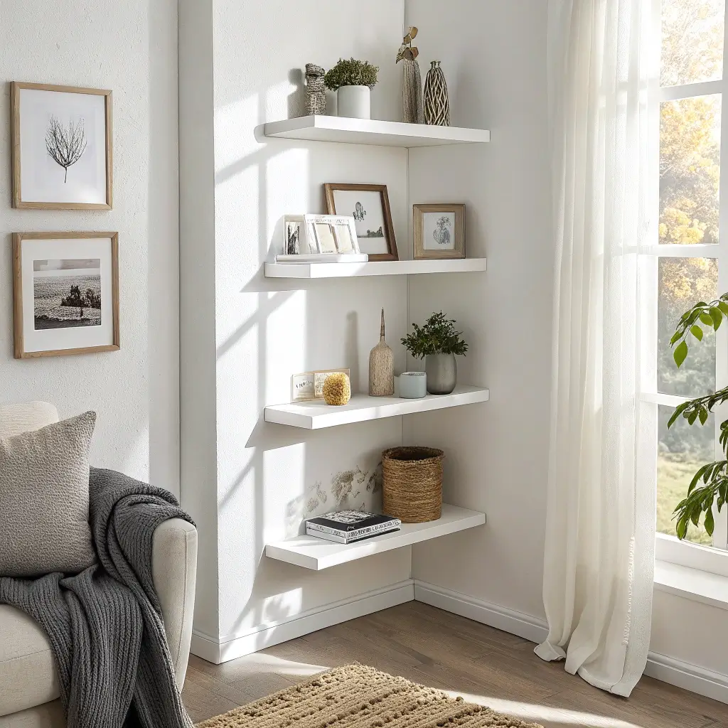 Minimalist White Floating Corner Shelves
