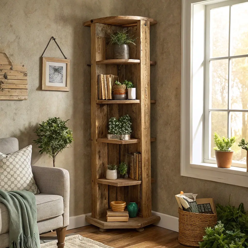 Rustic Wooden Corner Shelf Tower