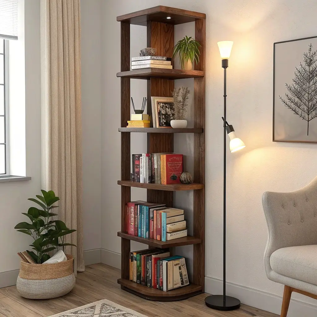 Book lovers, rejoice! Tiered corner bookshelves turn that awkward corner into your personal library. I created a five-tier setup in my home office corner, and it holds an embarrassing number of books while taking up minimal floor space.