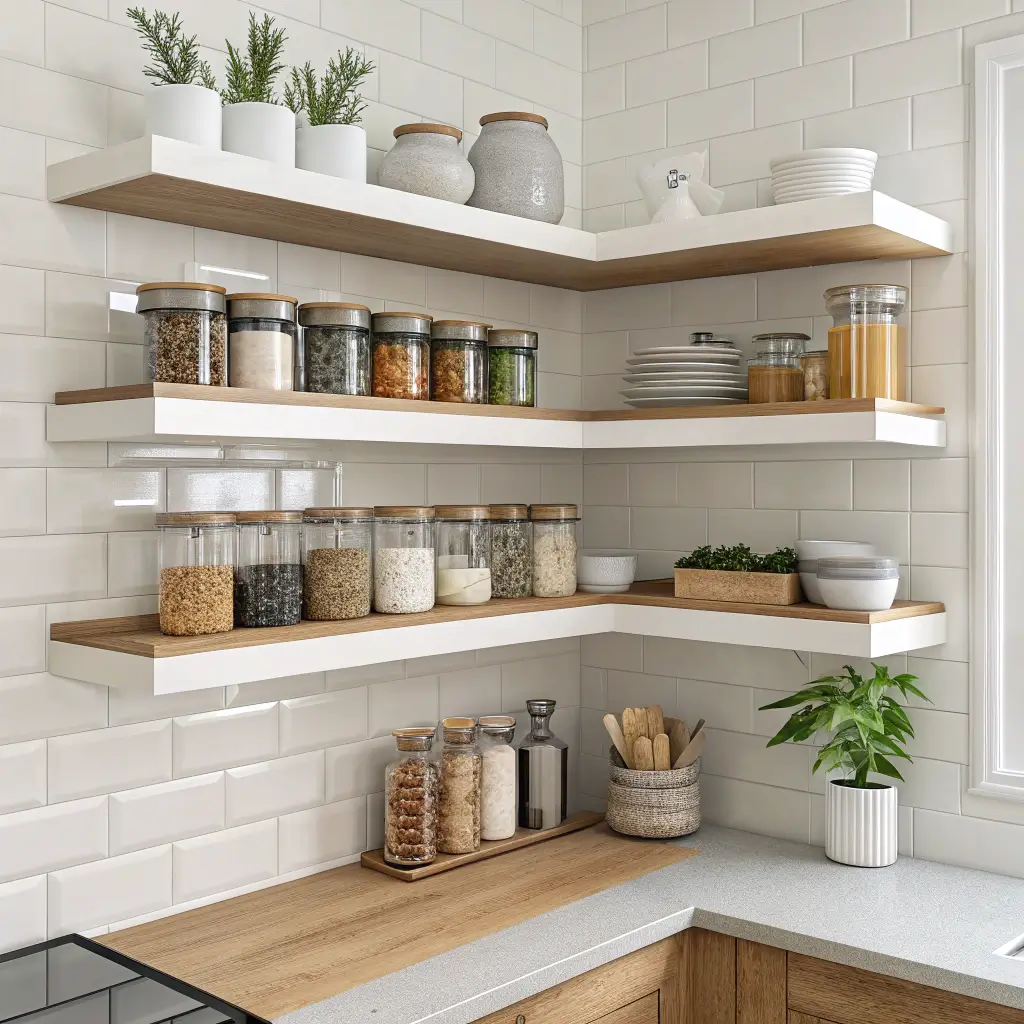 Kitchen corners notoriously collect dust and spider webs. Corner spice shelves turn that wasted space into organized culinary heaven. I installed narrow floating shelves in my kitchen corner specifically for spices, and cooking has become so much easier when I can actually see what I have.