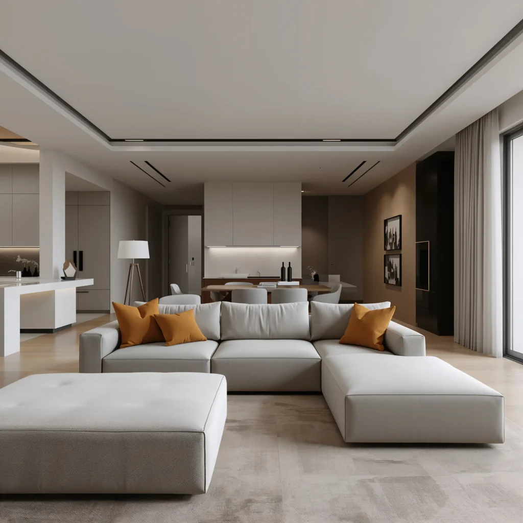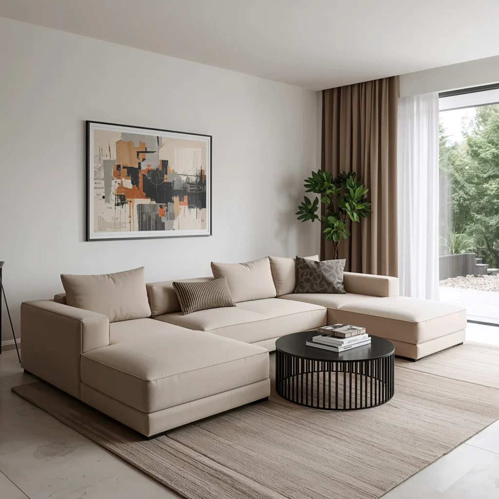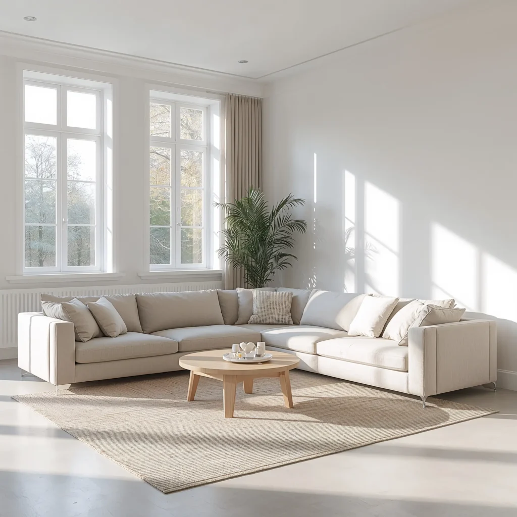 Minimalist L-Shaped Corner Sofa with Neutral Tones