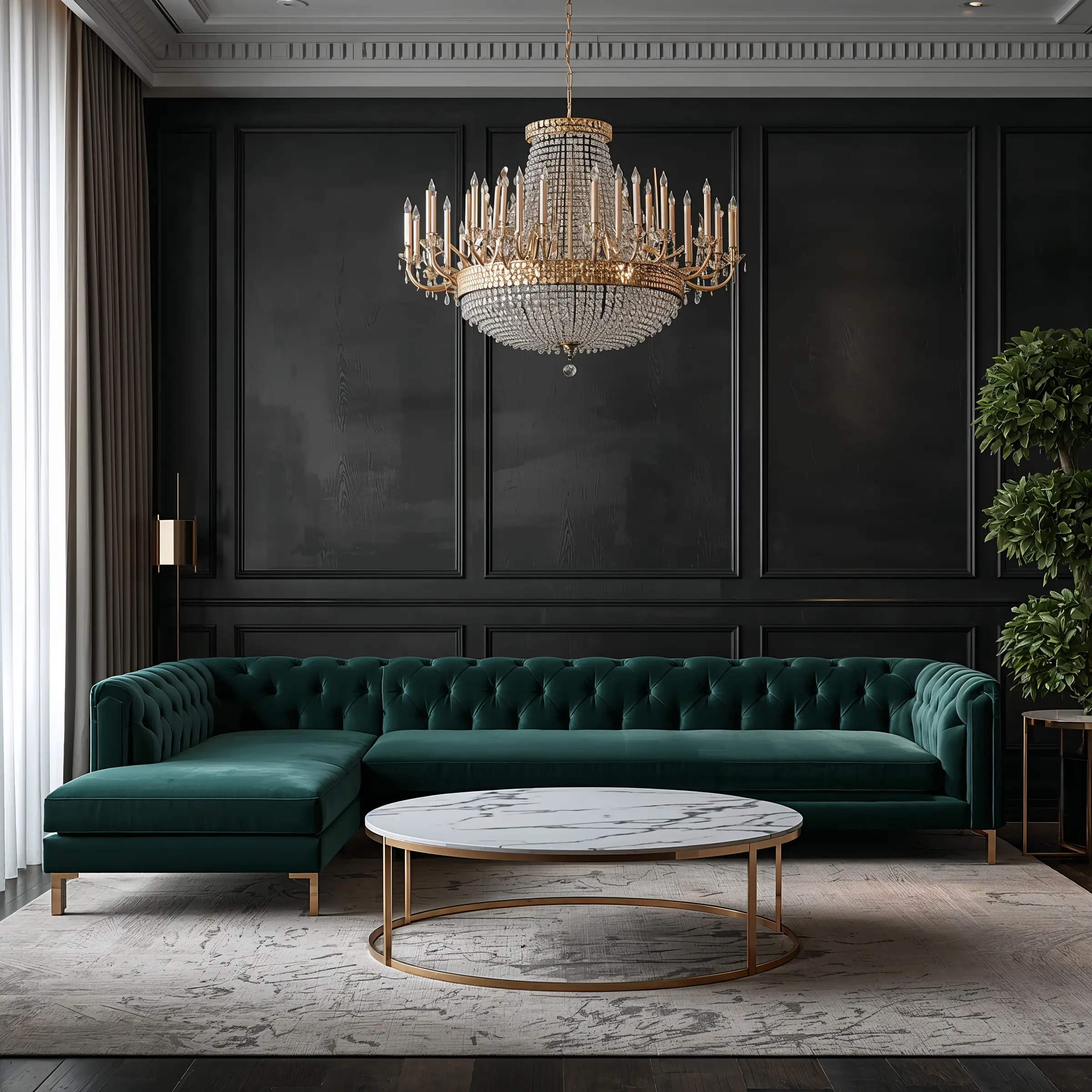 Now we’re talking drama! If minimalist isn’t your vibe and you’re more of a “go big or go home” person, velvet corner sofas with gold accents will make your heart sing. I’m obsessed with how these pieces can instantly elevate any room from ordinary to absolutely stunning.