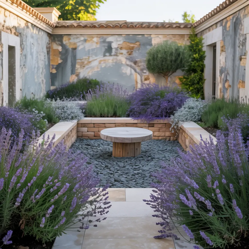 4. Small Courtyard Cottage Garden With Lavender Borders
