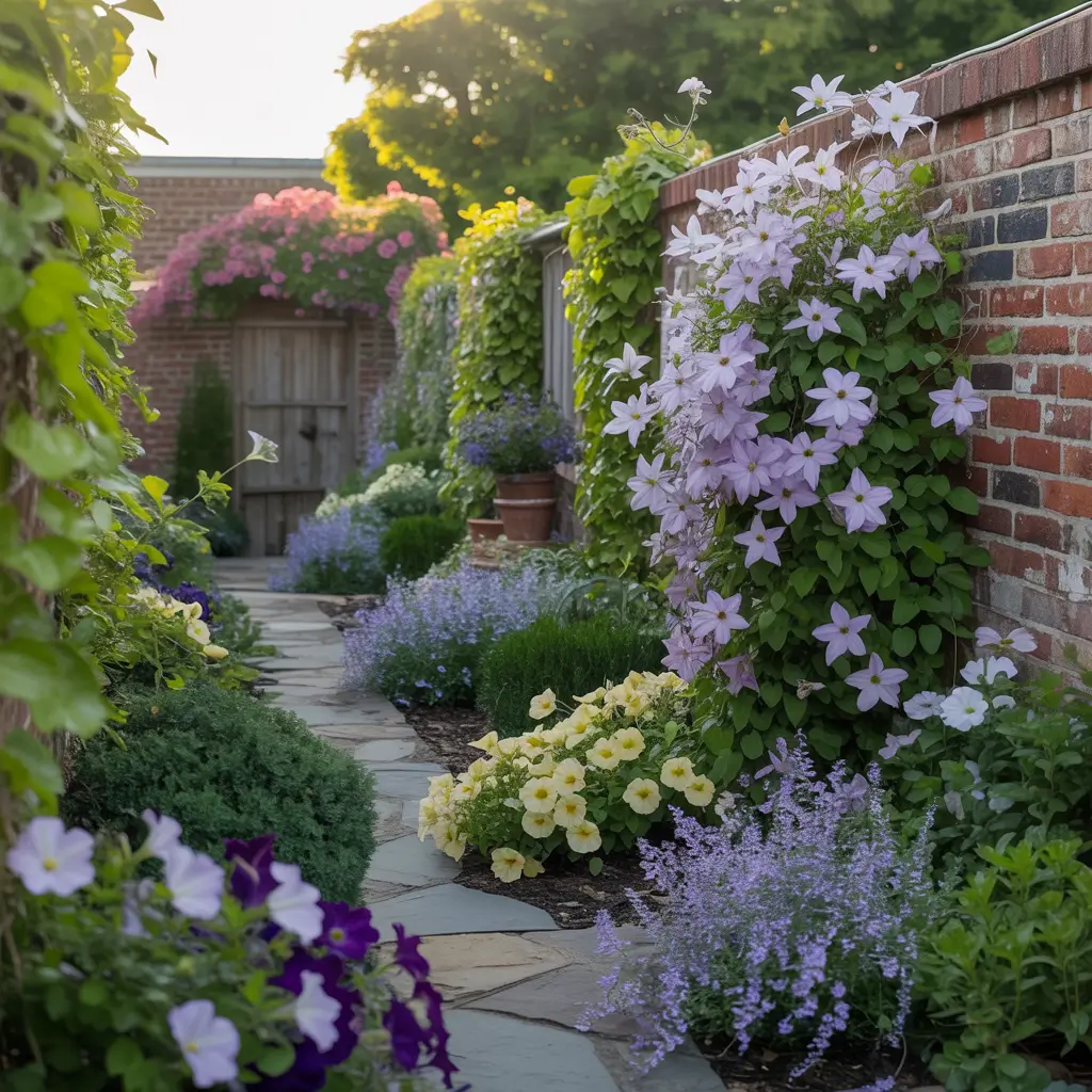 Plants that work particularly well in narrow cottage gardens include climbing roses, clematis, narrow columnar evergreens, and compact perennials like hardy geraniums and catmint. The goal is creating a lush, abundant feeling without overcrowding the space.
