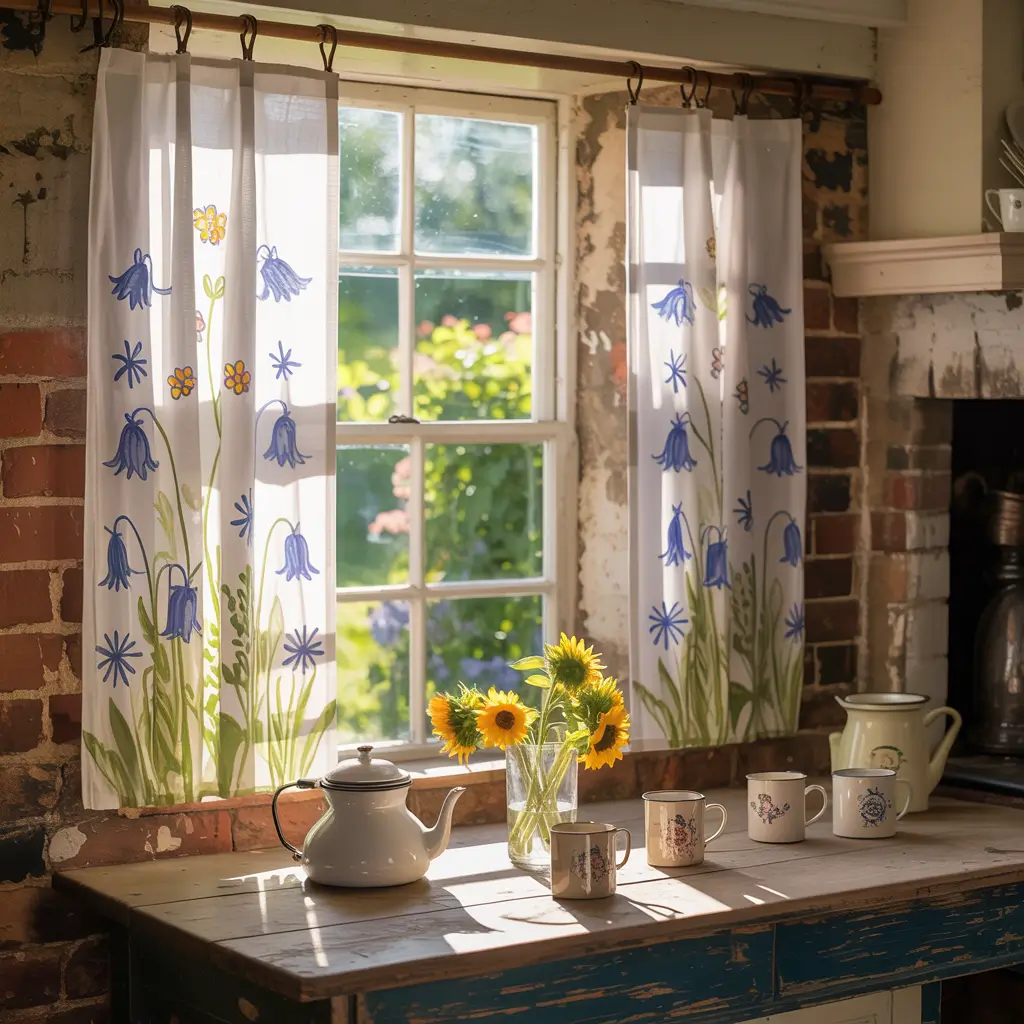 Hand embroidery on curtains? It’s like jewelry for your windows! Cottage-inspired embroidered curtains add that extra special touch that makes a kitchen feel truly loved. Whether it’s simple running stitches or elaborate floral designs, embroidery elevates basic curtains to heirloom status.