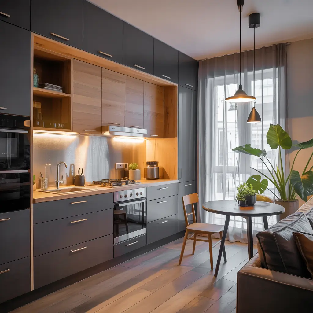 Modern doesn’t mean cold – that’s what I tell everyone who thinks contemporary design lacks soul. A compact modern kitchen can be incredibly cozy when you balance clean lines with warm touches. Think of it as minimalism’s slightly more decorated cousin.