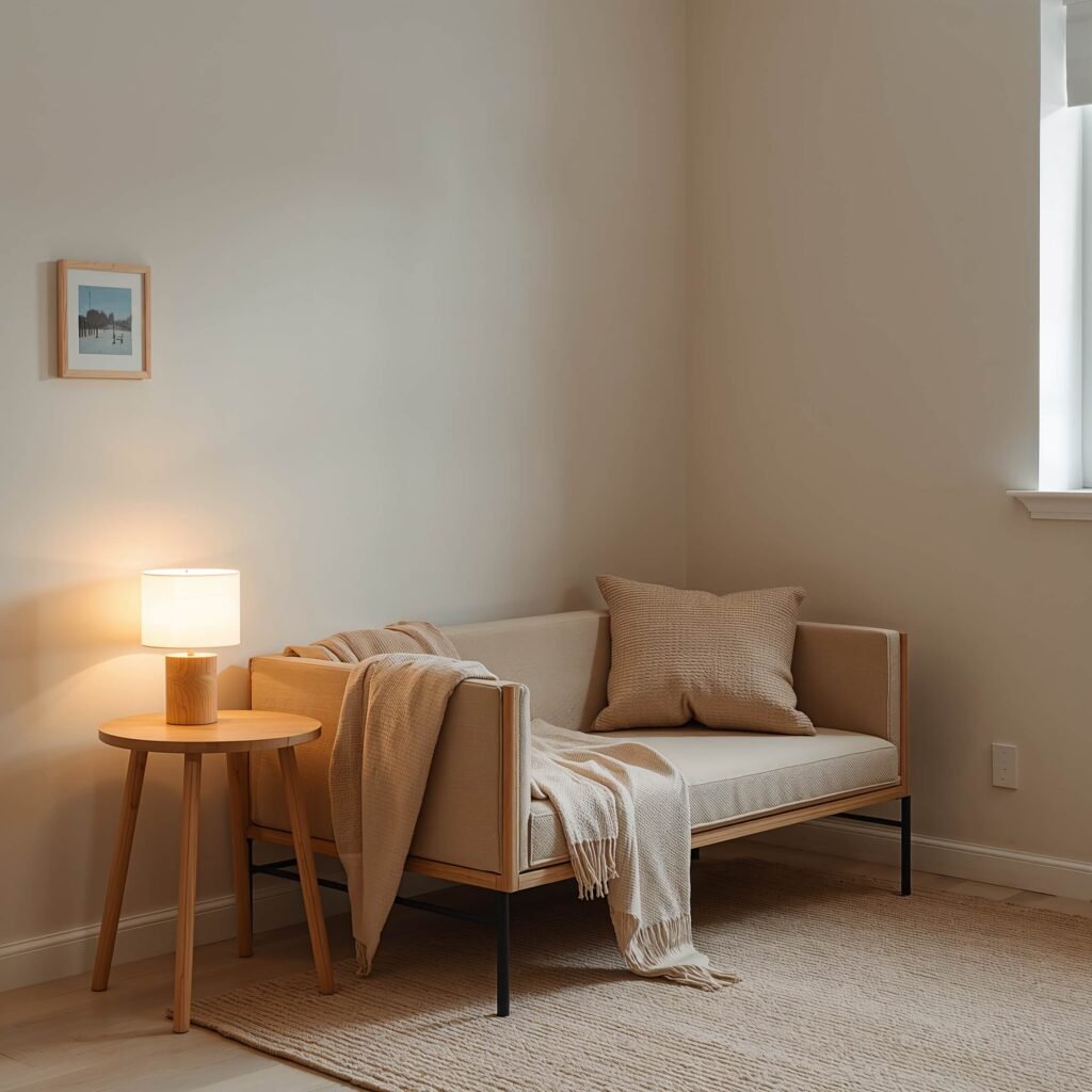 I helped my sister transform a 6×8 corner of her basement into her meditation space. We used light gray paint, a low-profile daybed with storage underneath, and a single floating shelf for her essential oils. The whole setup cost less than $500, and it’s become her favorite spot in the entire house.