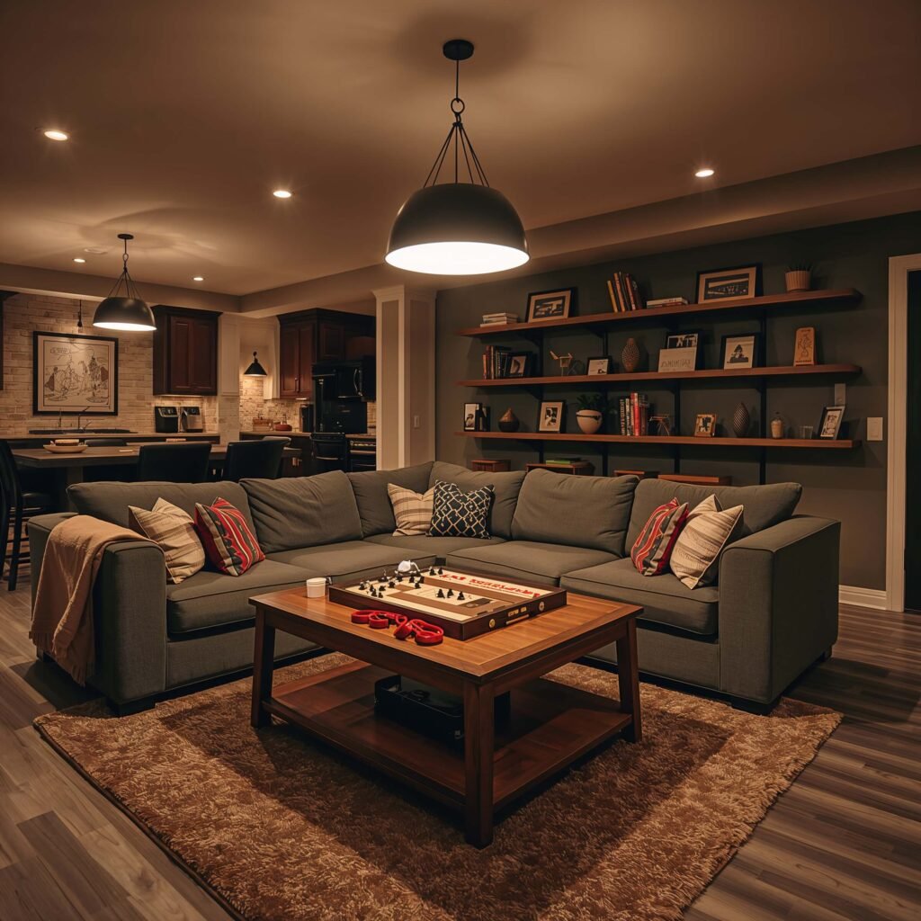 Cozy Basement Game Night Room