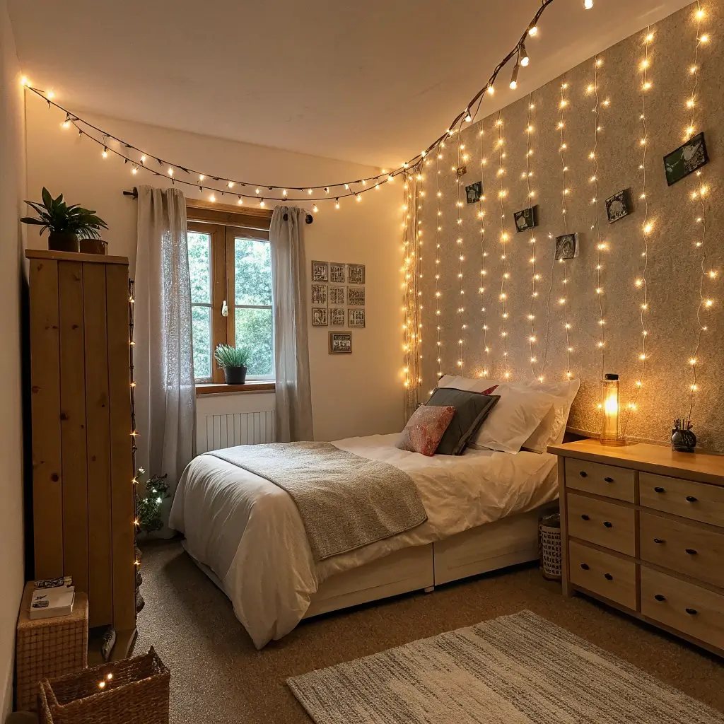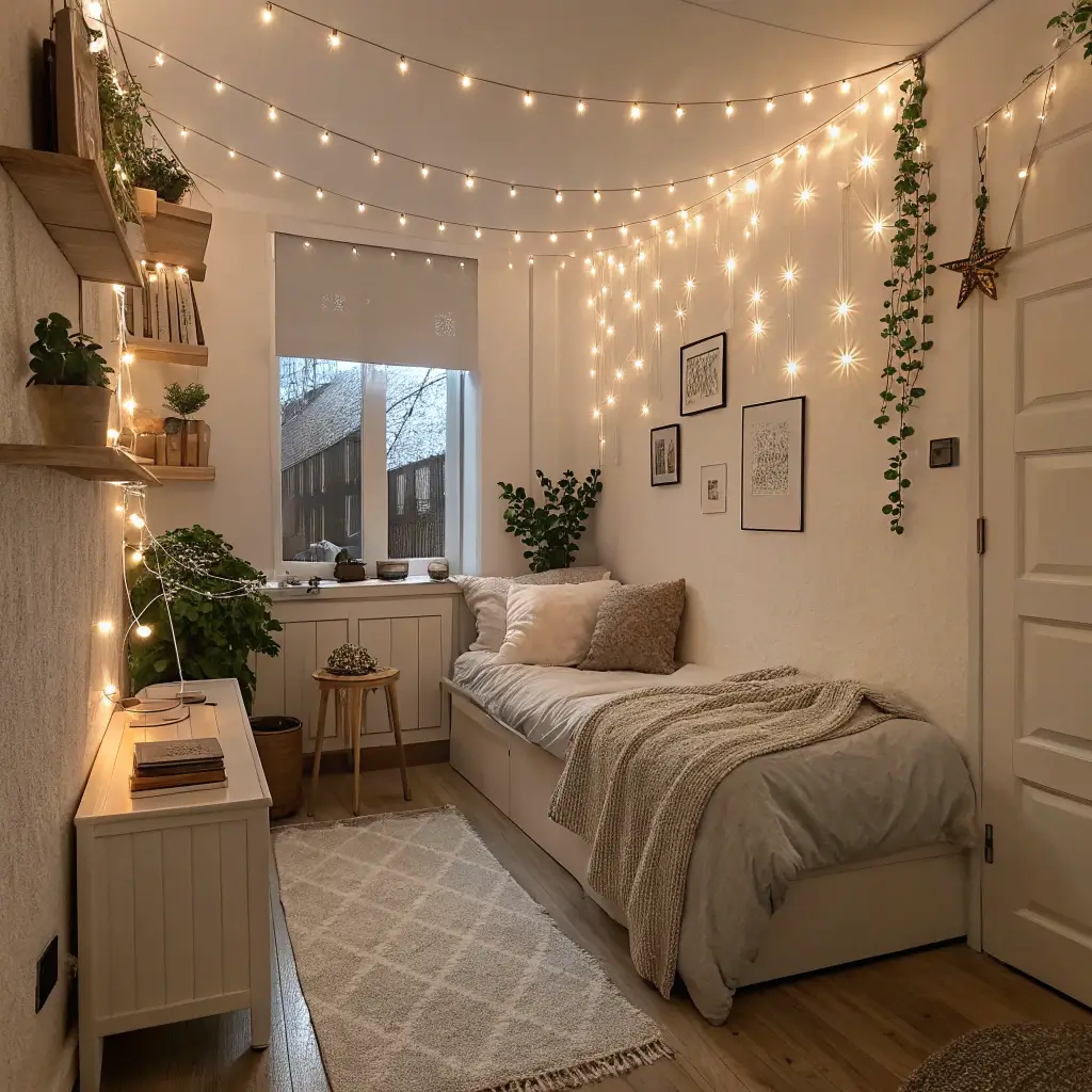 Small bedrooms need fairy lights more than any other space, IMO. They create the illusion of depth and make cramped quarters feel intentionally cozy rather than just… cramped. The secret is using multiple small light sources instead of one harsh overhead light.