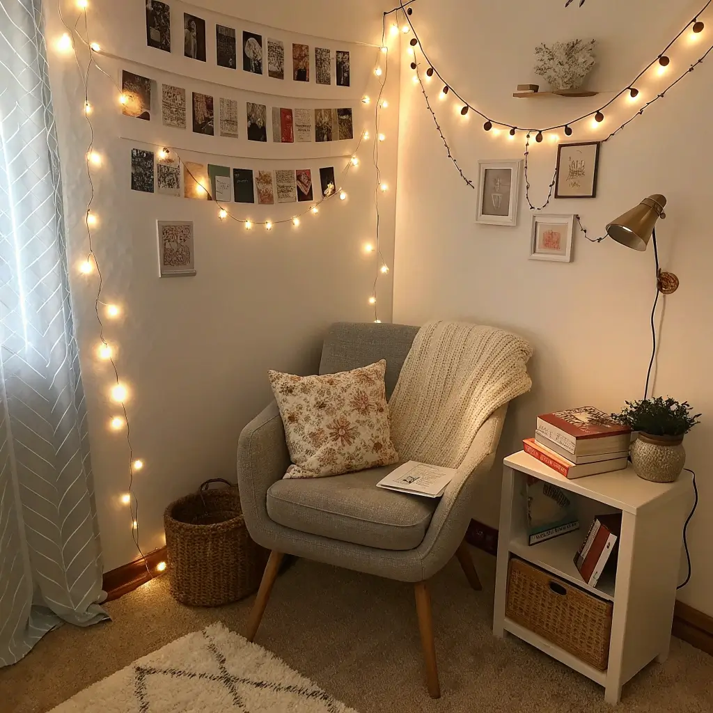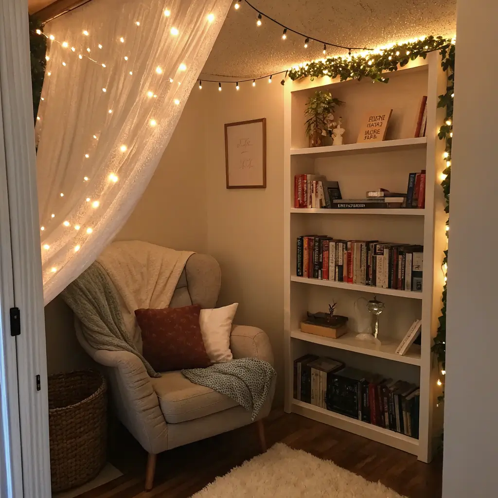 Cozy Reading Nook with Fairy Lights