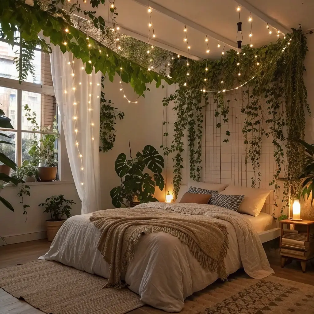 Combining fairy lights with plants creates this urban jungle meets enchanted forest vibe that I’m completely obsessed with. The organic shapes of plants paired with twinkling lights feels like nature’s own decoration scheme.