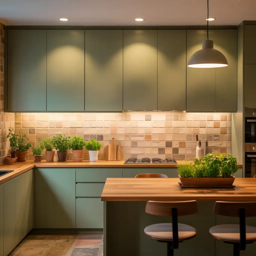 This color combo makes me think of morning walks through the forest – grounding, natural, and surprisingly versatile. Green kitchens are having a moment, but pairing them with beige keeps things from feeling too trendy or overwhelming.