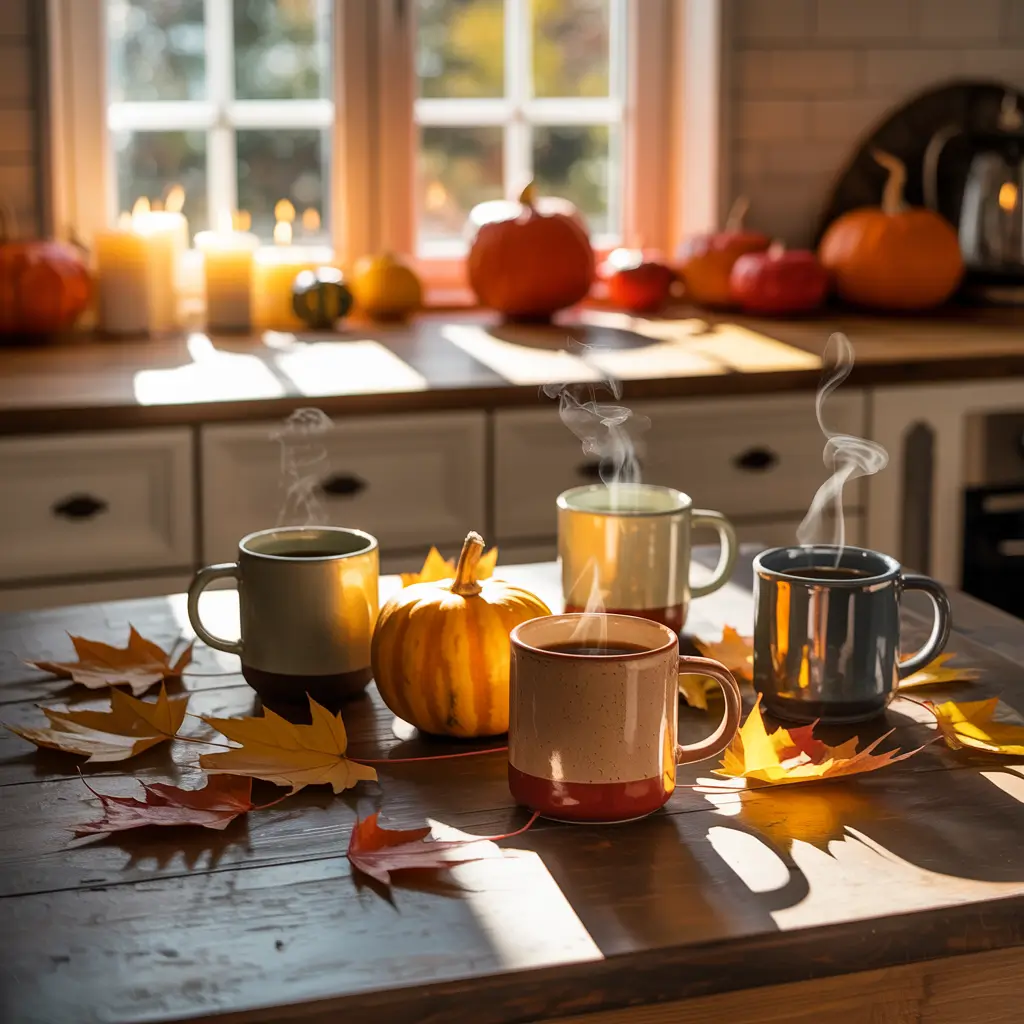 Think burnt orange, deep burgundy, golden yellow, and rich brown. These colors make every meal feel like Thanksgiving dinner. I keep autumn touches in my kitchen year-round because honestly? They just make me happy. Copper Moscow mule mugs, amber glass bottles, dried wheat stalks – instant cozy.